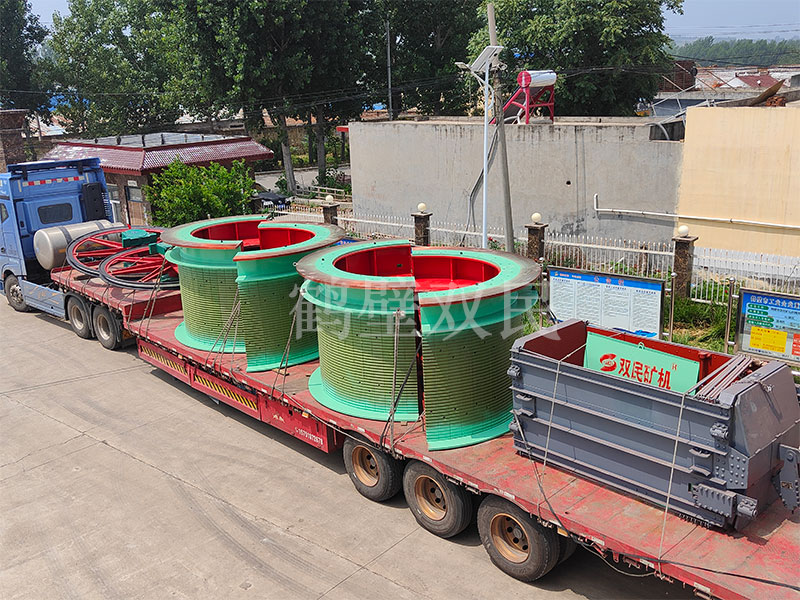 凿井绞车厂家鹤壁双民发往新疆的3米双筒矿井提升机装车出货!