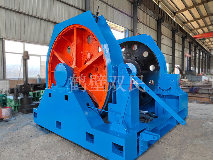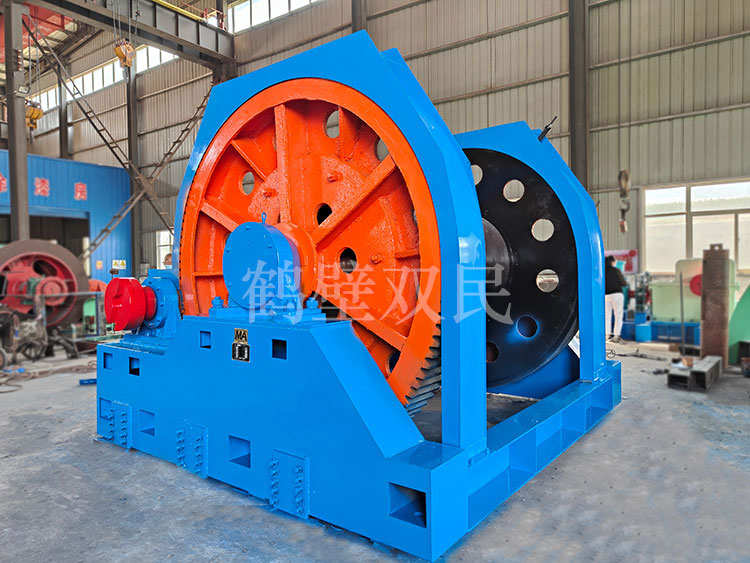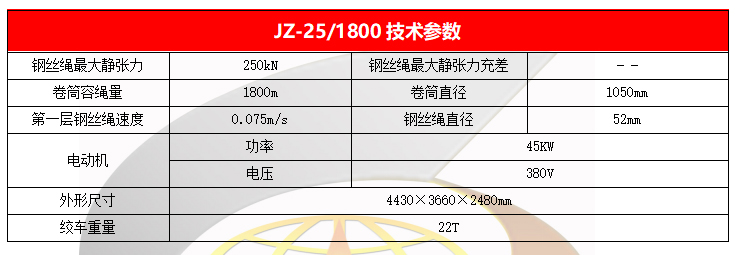 结构特点 本绞车主要用于煤矿、金属矿和非金属矿竖井井筒掘进时悬吊吊盘、水泵、水管、注浆泵、风筒等掘进设备和张紧稳绳,该绞车系双钢丝绳悬吊。将减速机上的差动手把放在差动位置,若张紧稳绳,可使两根稳绳的张紧力保持相等;若悬吊水管、注浆管、风筒等管类设备,可保证其被悬吊管类设备与地面保持垂直的状态。如果悬吊吊盘等盘状设备,需将其差动手把放在直通位置,才能实现两绳绳速的一致。