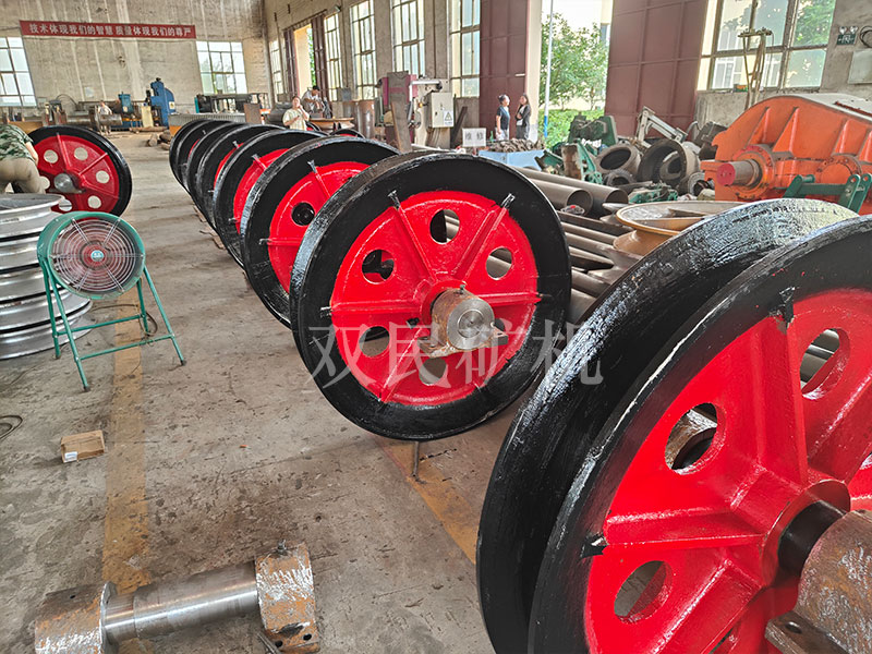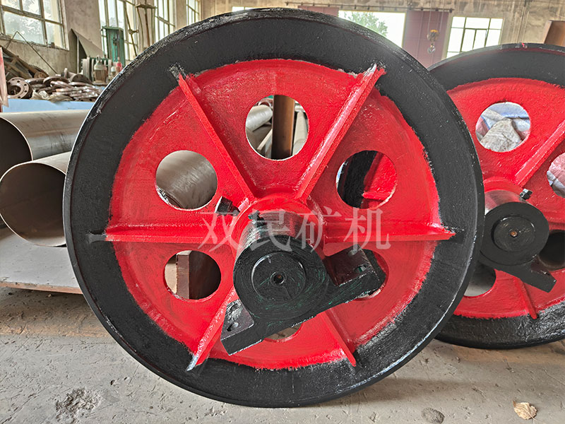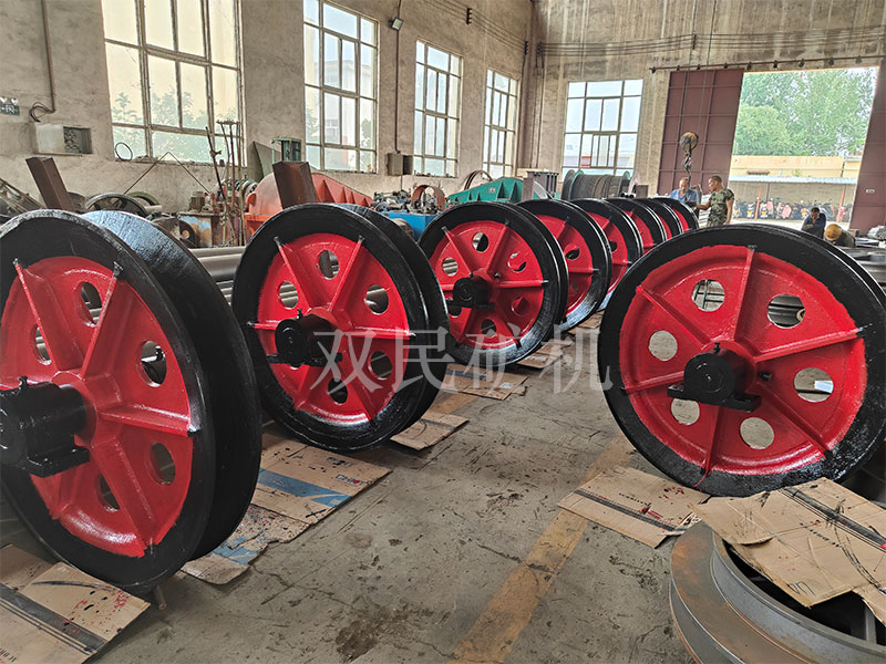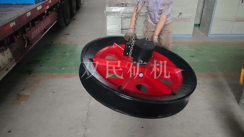 悬吊天轮又按凿井绞车的性能分为单槽天轮和双槽天轮两类,其中单槽天轮七种,双槽天轮十种。一律采用固定心轴、整体轴承座支承,轴承座和绳轮均采用HT20-40普通铸铁。