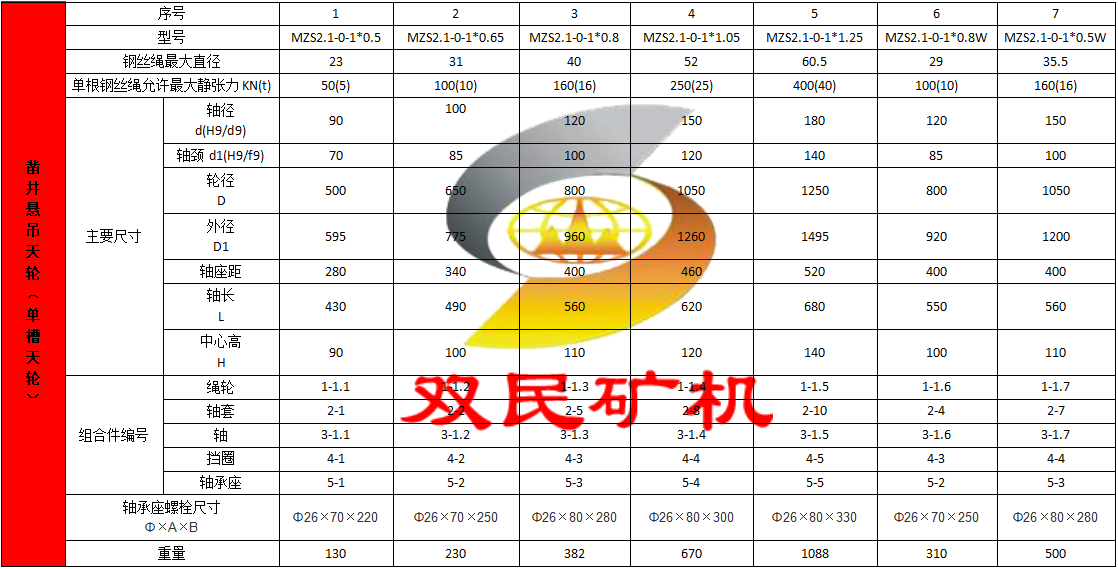 凿井悬吊天轮是按JZ系列凿井绞车钢丝绳最大静张力分别为5t(50kN),10t(100kN),16t(160kN),25t(250kN),40t(400kN)进行配套设计的。