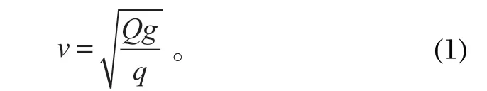 在井口附近位置,对罐道绳某一点施加一垂直冲击力,使罐道绳产生横向振动。振动波在钢丝绳上的传递速度与钢丝绳所受张力的关系如下: