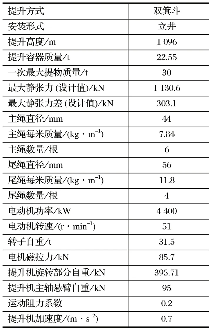本研究以某矿 JKM-4.5×6PⅢ多绳摩擦式提升机为例,该提升机由中信重工机械股份有限公司设计制造,其系统参数如表1 所列。主轴传动侧采用 FAG双列调心滚子轴承,轴承型号为 240/1060BK30.MB(FAG),轴承当量动载荷 Cr=18 600 kN,e =0.27,Y=2.47。