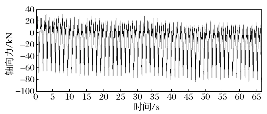 4.2 测试方法获得轴向力 分别对左、右罐重载上提稳定运行工况进行测试,轴向力测试结果如图4、5 所示。