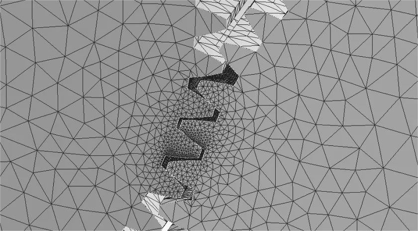 在 SolidWorks 中对同步齿轮进行建模并调整,确保同步齿轮不会出现干涉。为了提高仿真精度和数据的可靠性,对静强度仿真过程中参与啮合的几对轮齿表面网格化。齿面网格细化模型如图5所示。