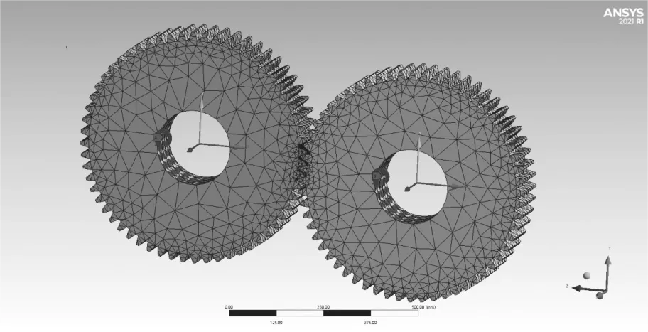 选用 ANSYS/Workbench 中的瞬态动力学???,对同步齿轮的啮合过程继续动态仿真分析。齿轮啮合分析主要针对齿轮的接触压力以及zui大等效应力特性。设置同步齿轮啮合仿真时间为0.3s,选取28个齿面进行14对接触,接触类型为摩擦接触,摩擦因数为0.2,法向刚度系数为1。根据同步齿轮的运动特性,确保齿轮只能绕 z 轴转动。齿轮瞬态分析约束与载荷施加情况如图8所示。