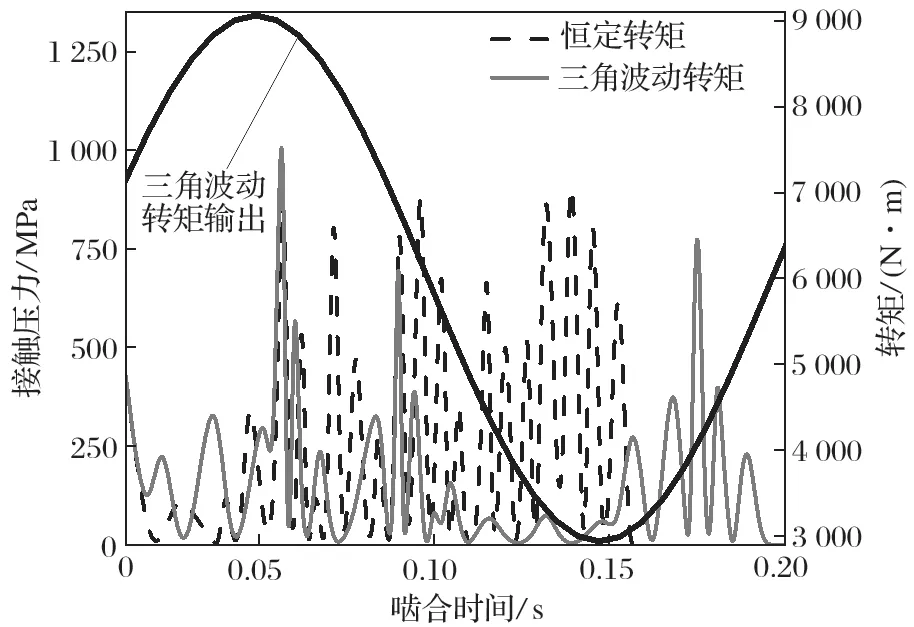 图10 恒定转矩与三角波动转矩接触压力的对比