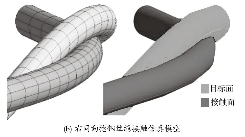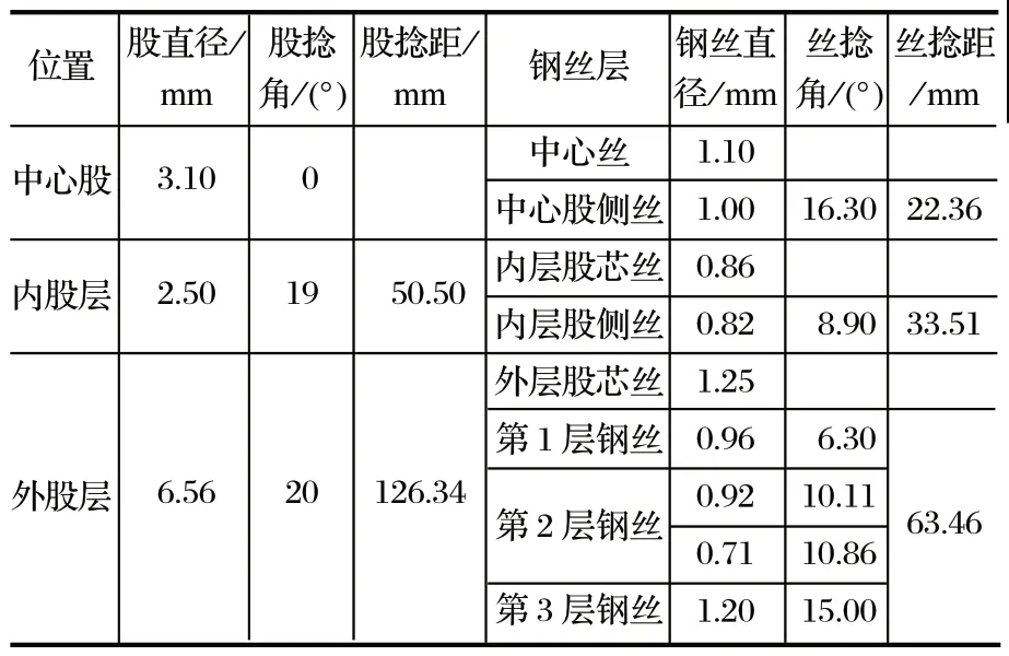 从表2 可以看出,钢丝绳主要分为 3 层,中 心股、内股和外股;3 股的直径不同,并且股捻距也存在一定的差异。在进行仿真求解时,需要对各个层进行定义。