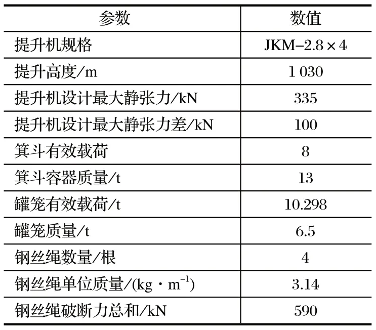 表1 某矿多绳摩擦式提升机参数