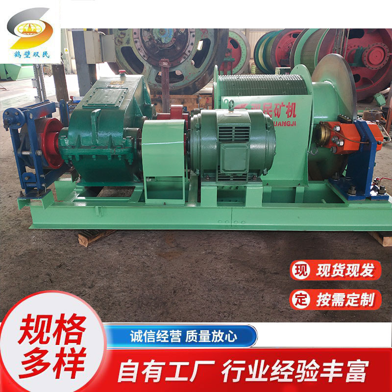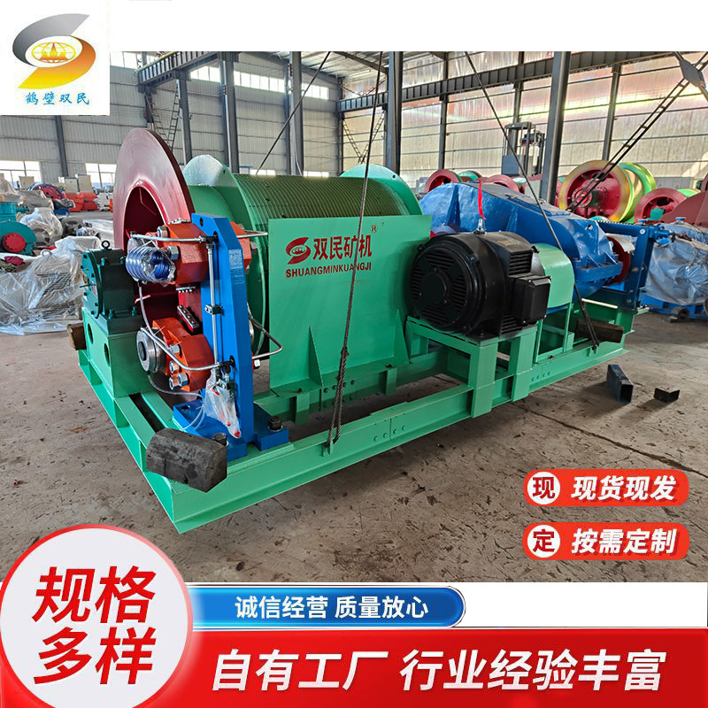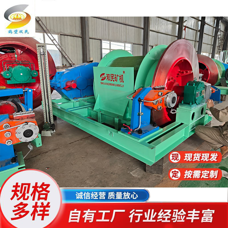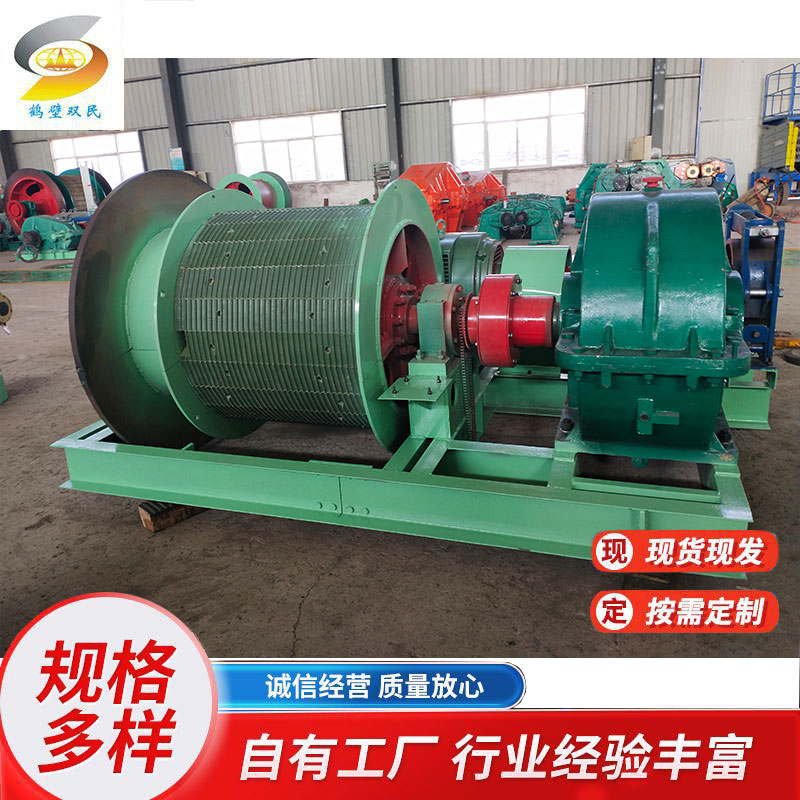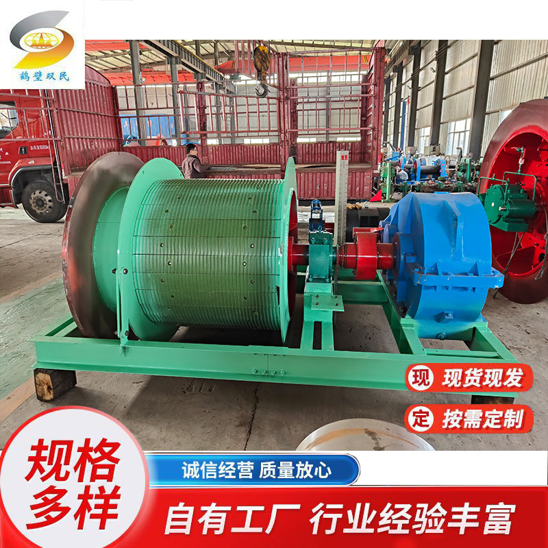 它主要用于矿井中升降人员、提升煤炭、矸石、物料等。其工作原理通常是通过电动机带动卷筒旋转,卷筒上缠绕的钢丝绳实现重物的升降。